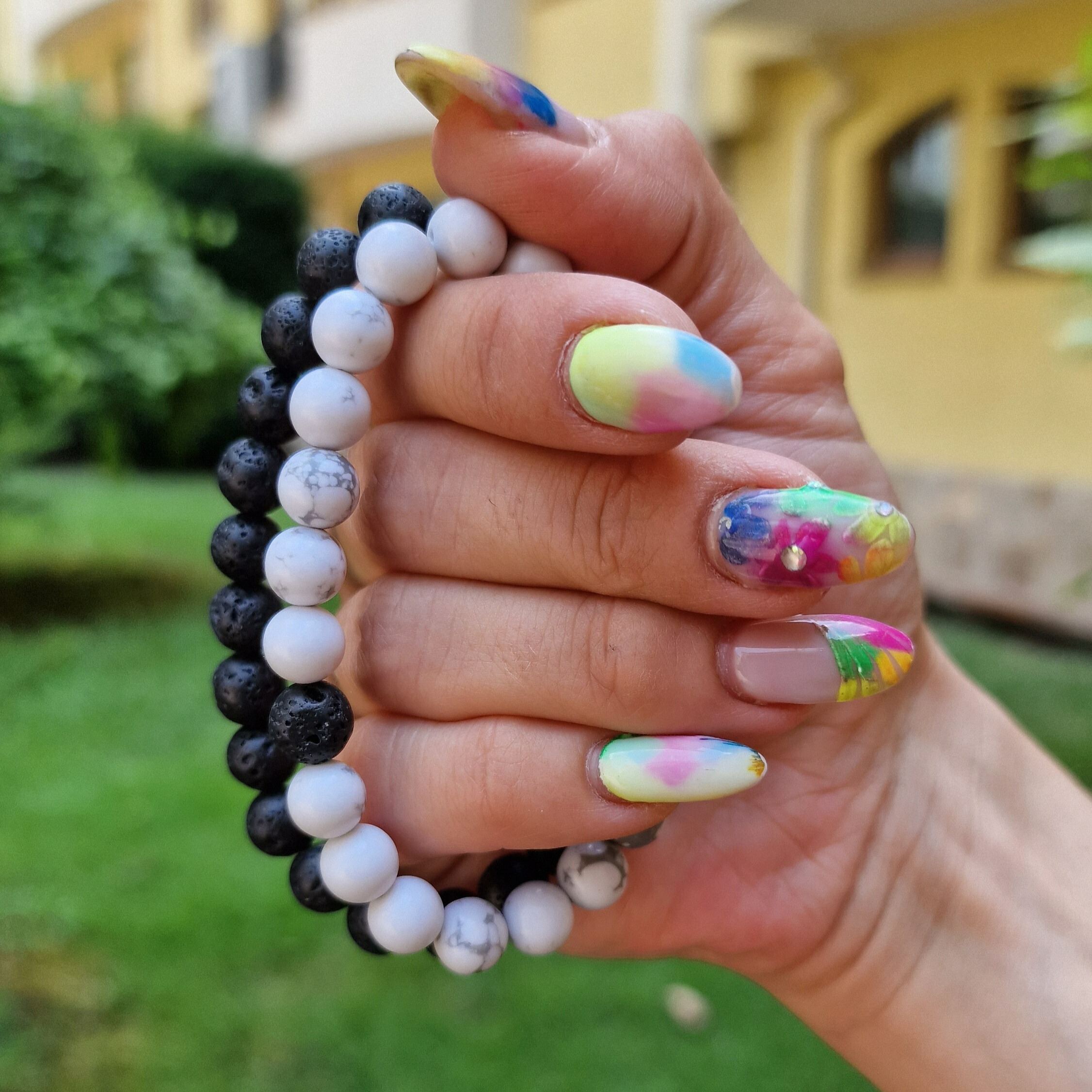 Двойна Гривна от Естествени камъни "Бял хаулит и Вулканичен камък" за Повече Равновесие и Изостряне на Паметта