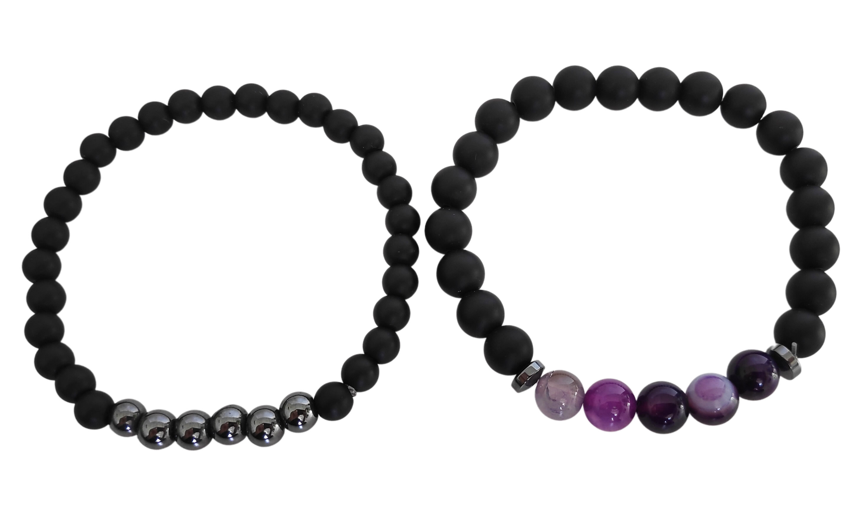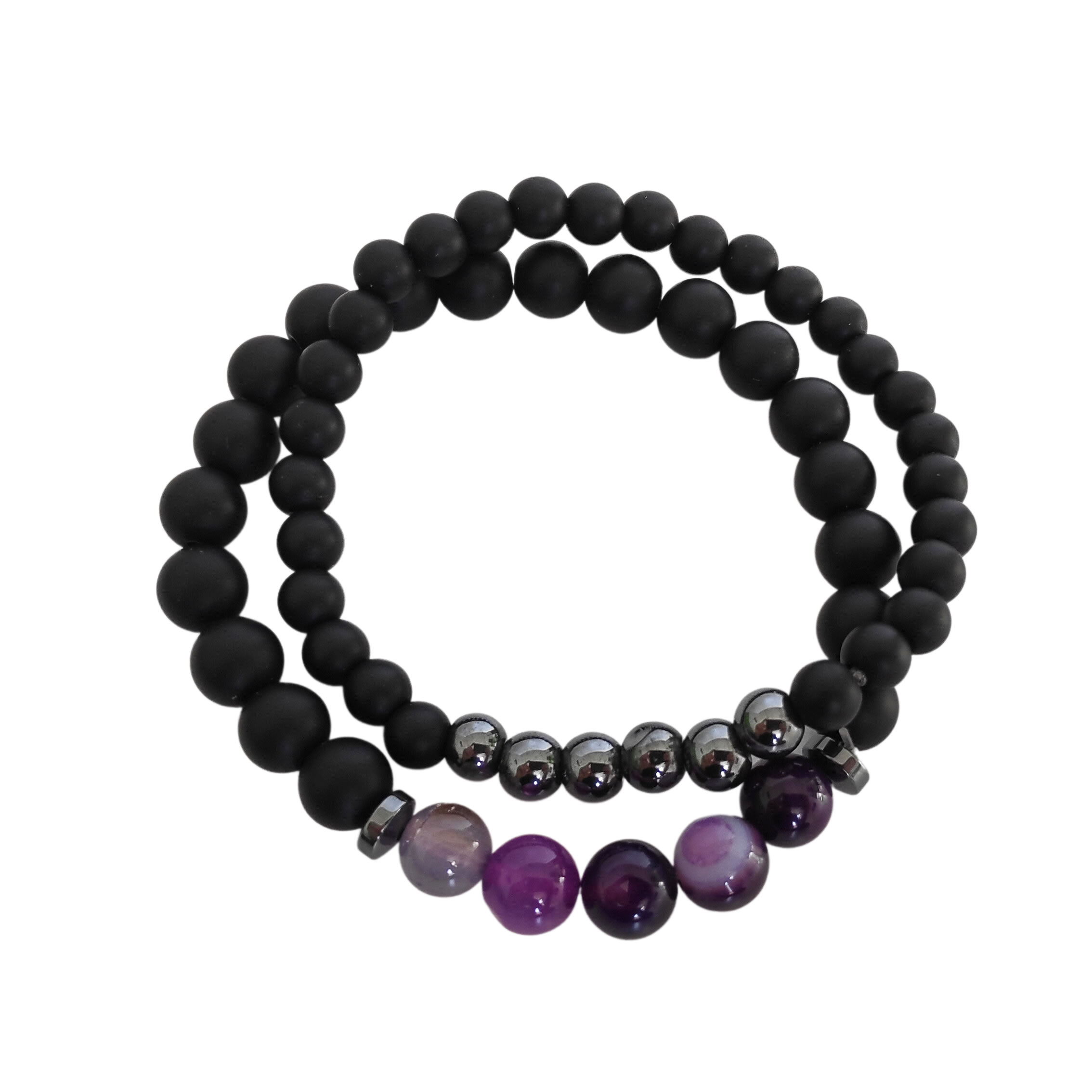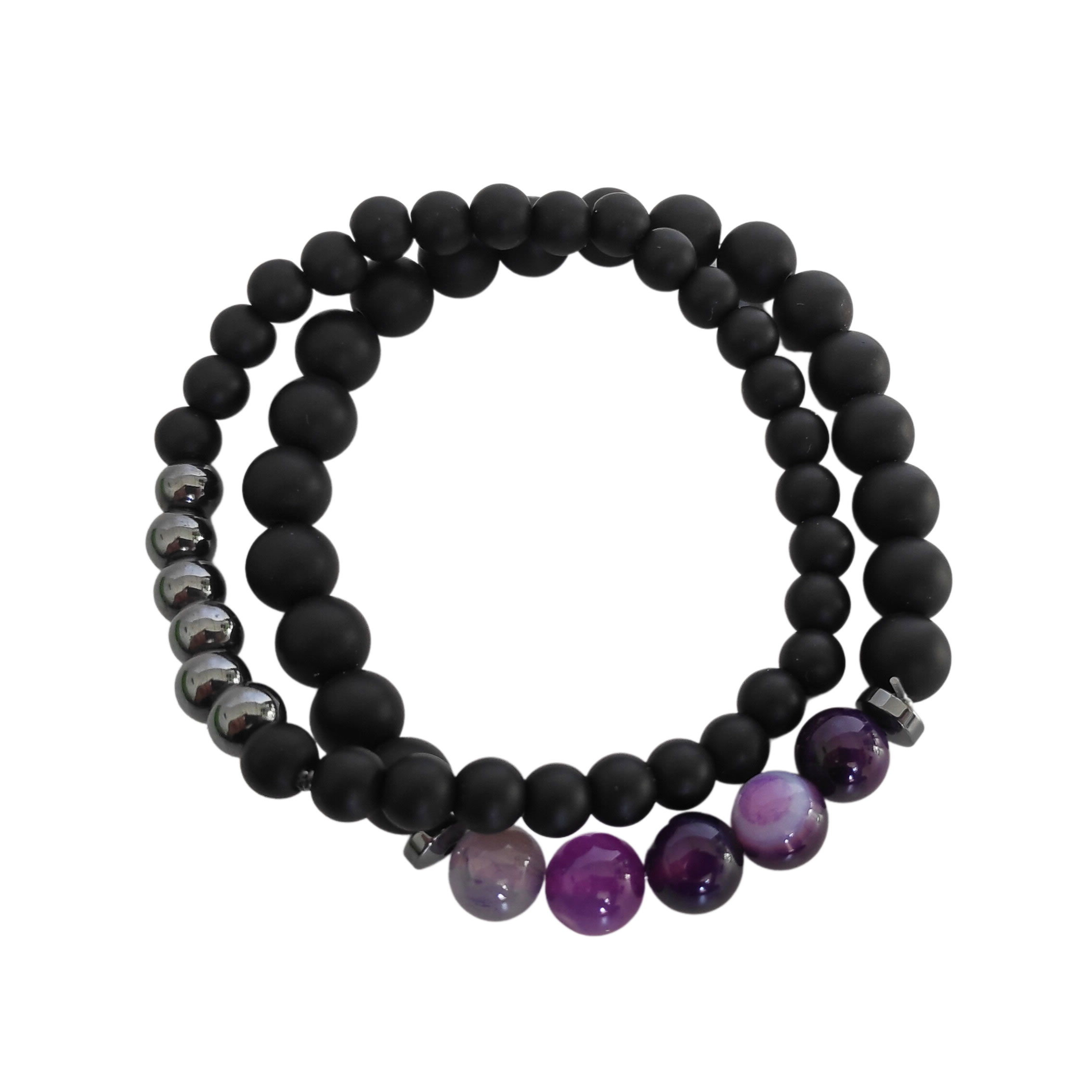 Двойна Гривна от Естествени камъни "Черен Оникс, Аметист и Хематит" за Повече Енергия и Мотивация