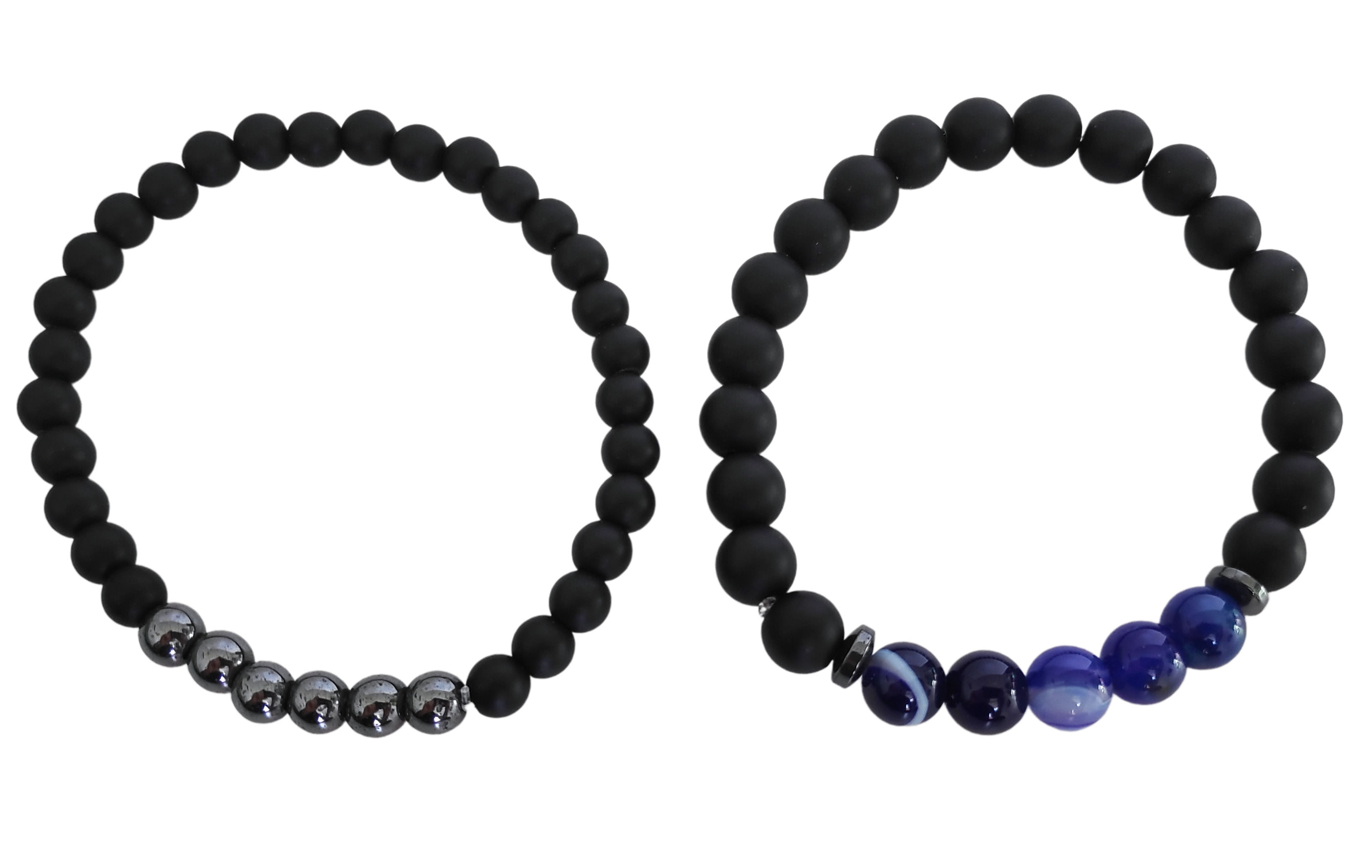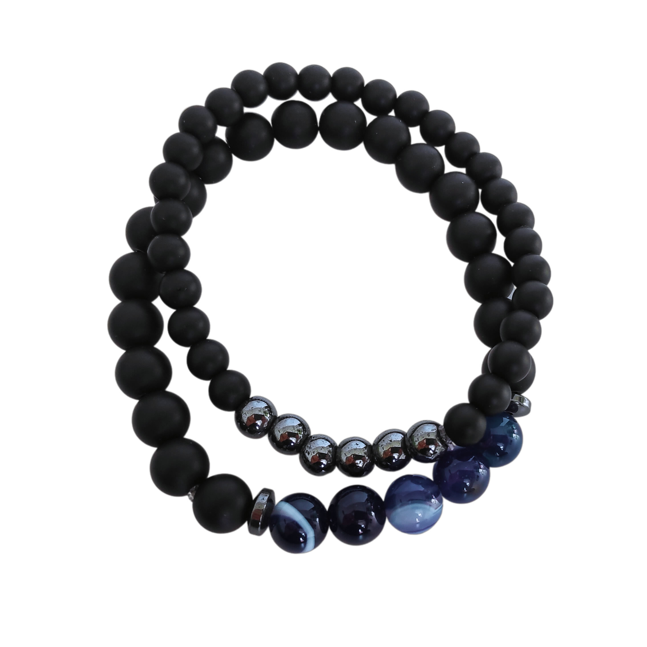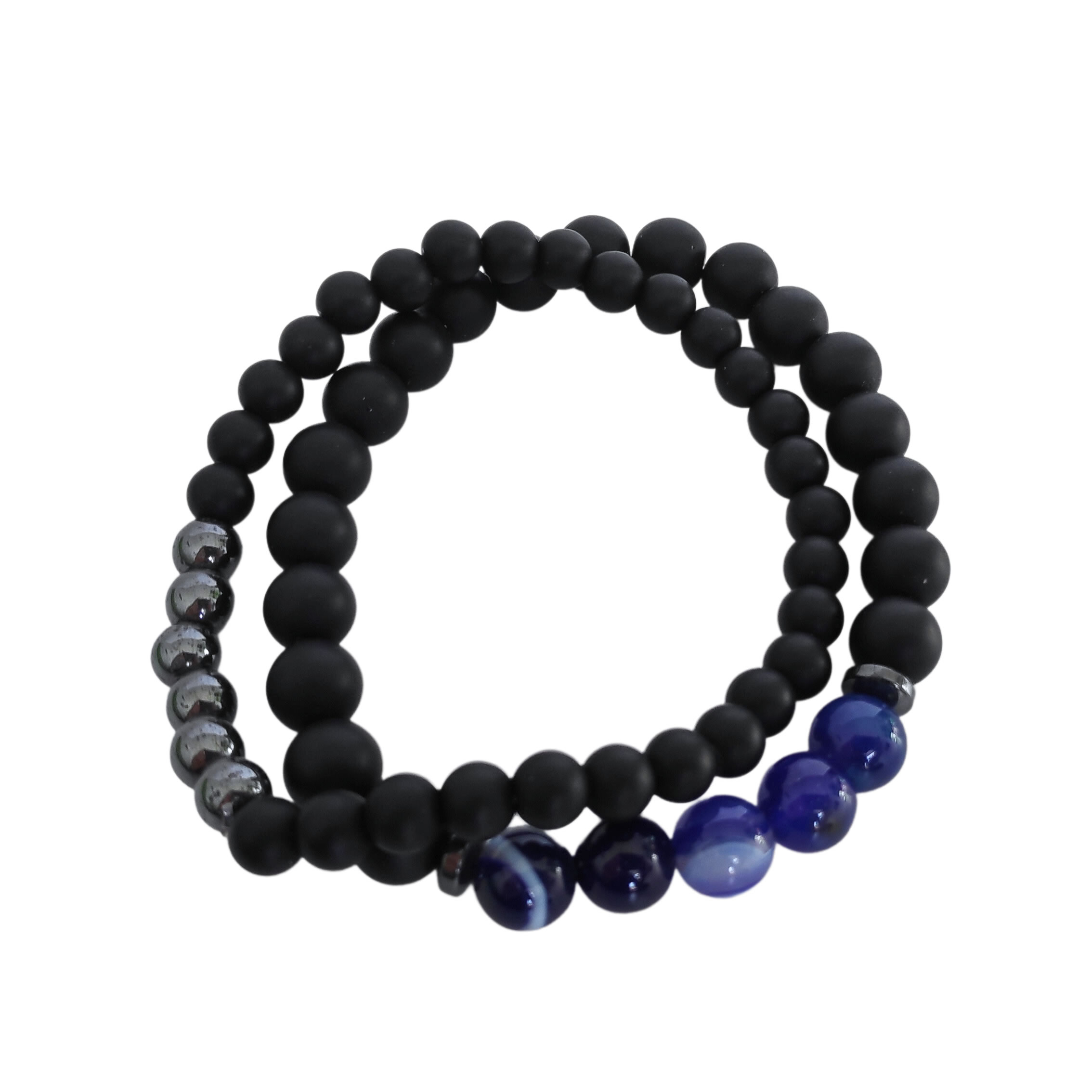 Двойна Гривна от Естествени камъни "Черен Оникс, Син Ахат и Хематит" за Повече Хармония и Спокойствие