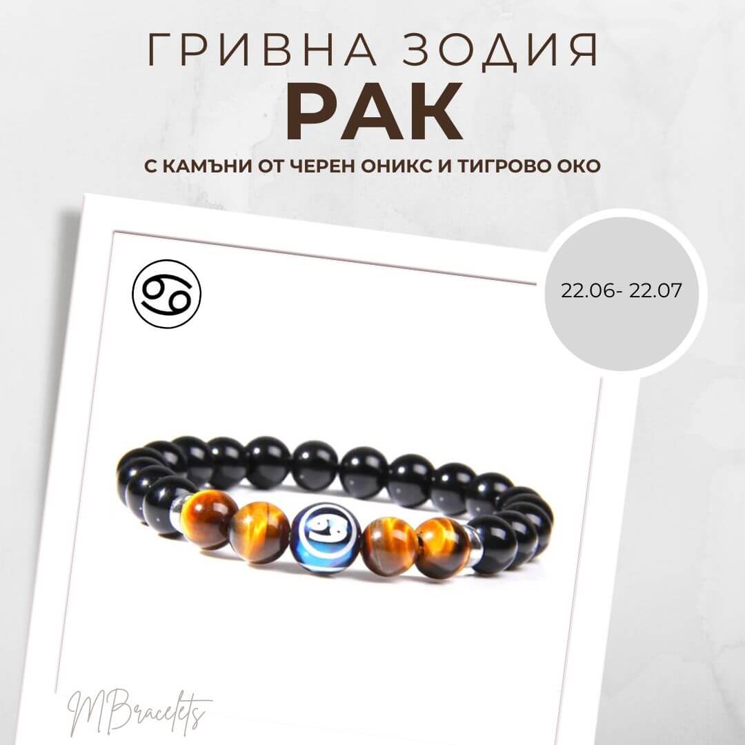 Гривна от Естествени Камъни Черен оникс и Тигрово око, Зодия Рак