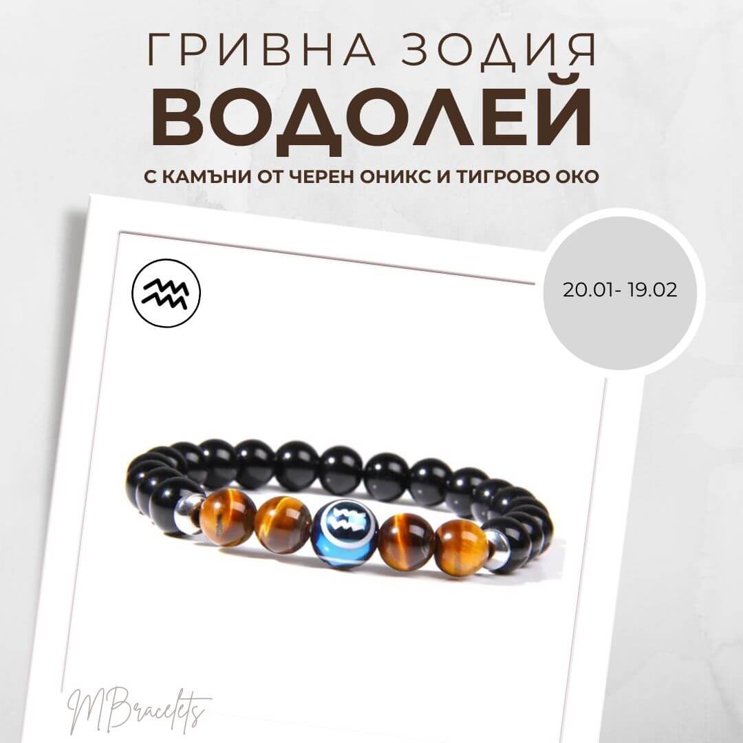 Гривна от Естествени Камъни Черен оникс и Тигрово око, Зодия Водолей