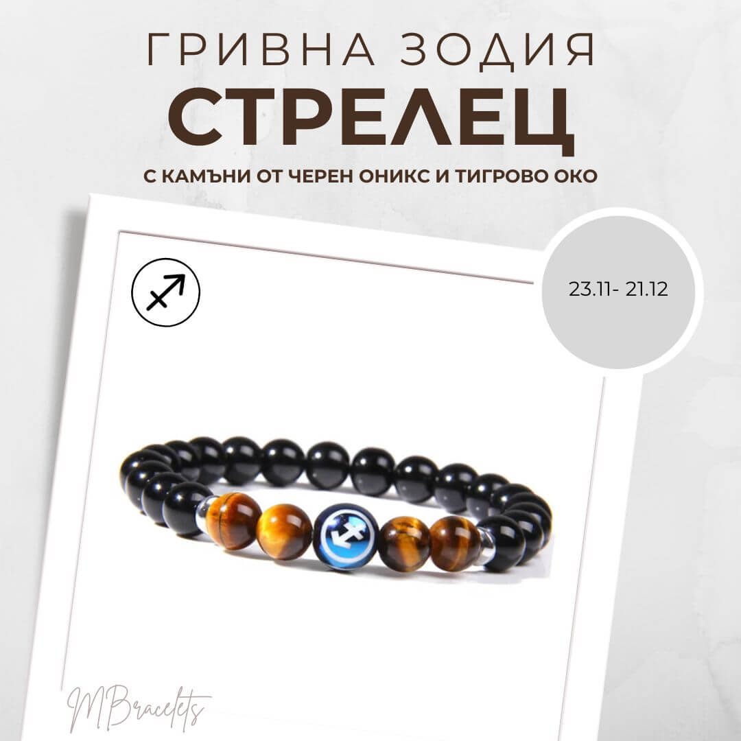 Гривна от Естествени Камъни Черен оникс и Тигрово око, Зодия Стрелец