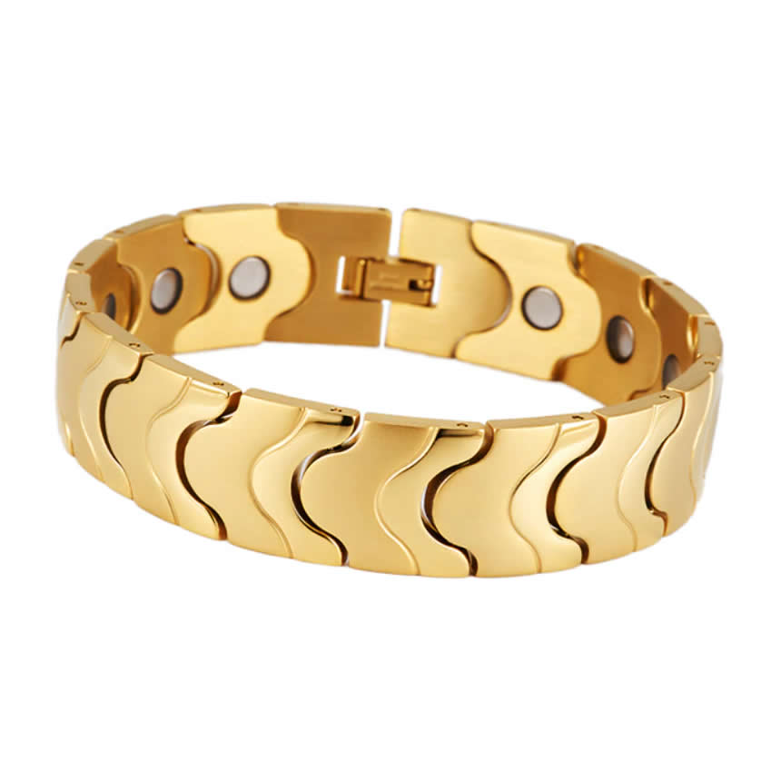 Магнитна гривна от титан за високо кръвно, Мъжка Златиста, Широка