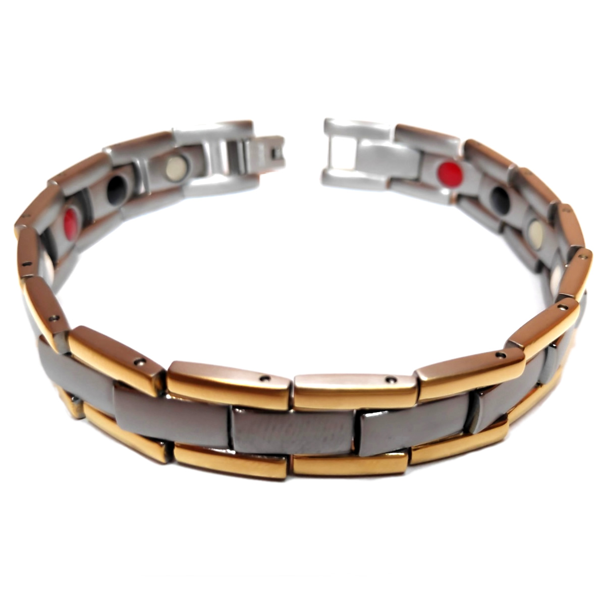 Унисекс магнитна гривна за високо кръвно, цвят Сребристо-Златист, от Титан