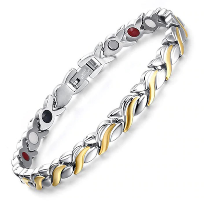 Дамска магнитна гривна за високо кръвно, Сребристо-Златиста от титан
