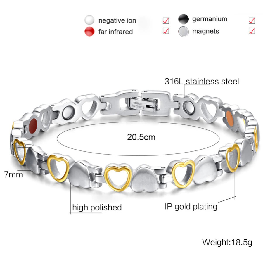 Дамска магнитна гривна за високо кръвно, цвят Сребристо-Златист, форма "Сърчица", Титаниева