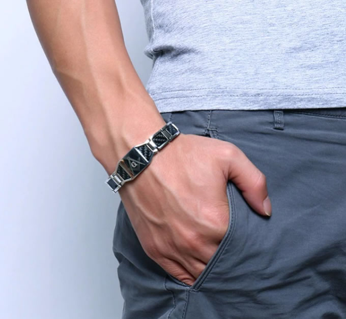 Титаниева магнитна гривна, която смъква кръвното, Унисекс модел, Сребристо-Черна