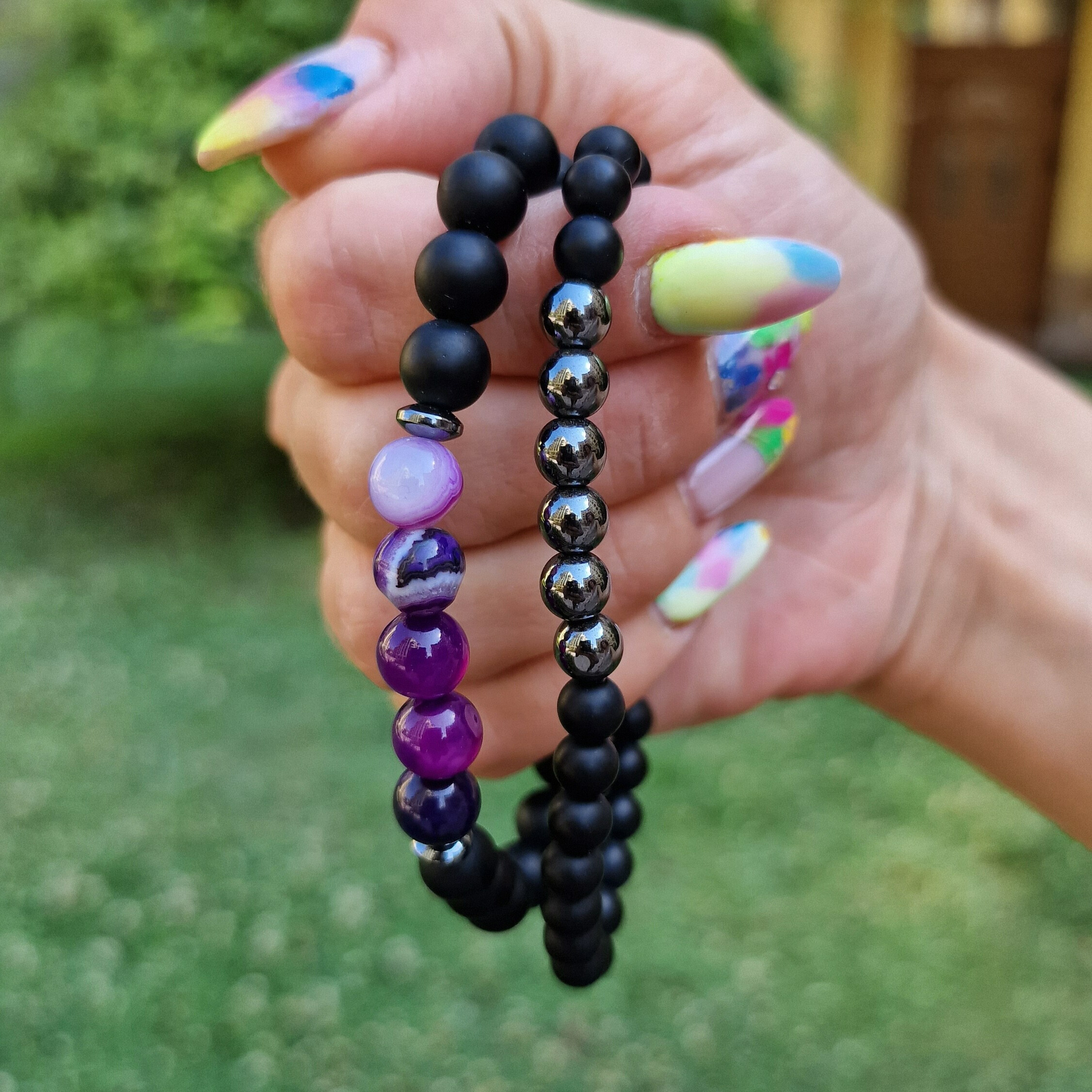 Двойна Гривна от Естествени камъни "Черен Оникс, Аметист и Хематит" за Повече Енергия и Мотивация