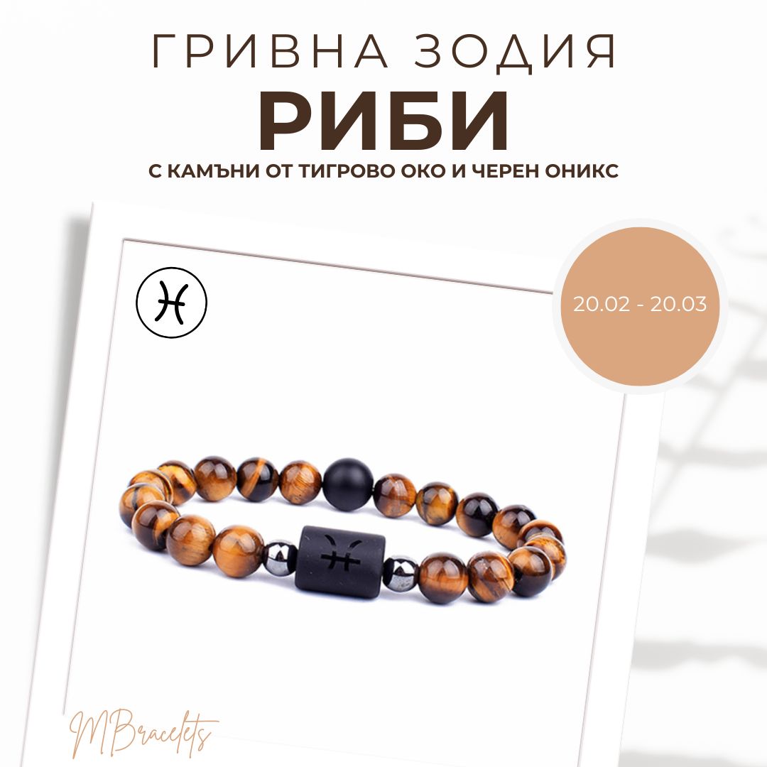Гривна от Естествени Камъни Тигрово око и Черен оникс, Зодия Риби