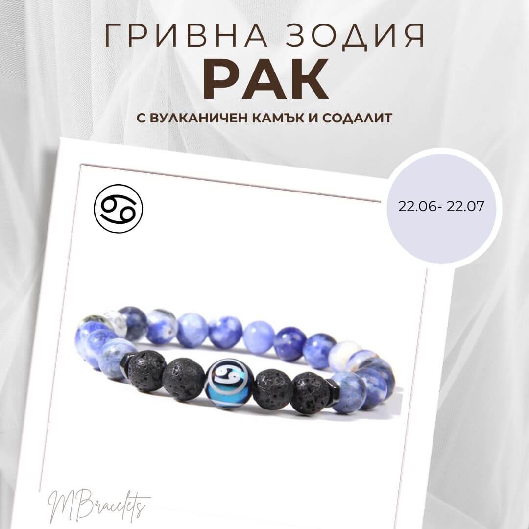 Гривна от Естествени Камъни Содалит и Вулканичен камък, Зодия Рак