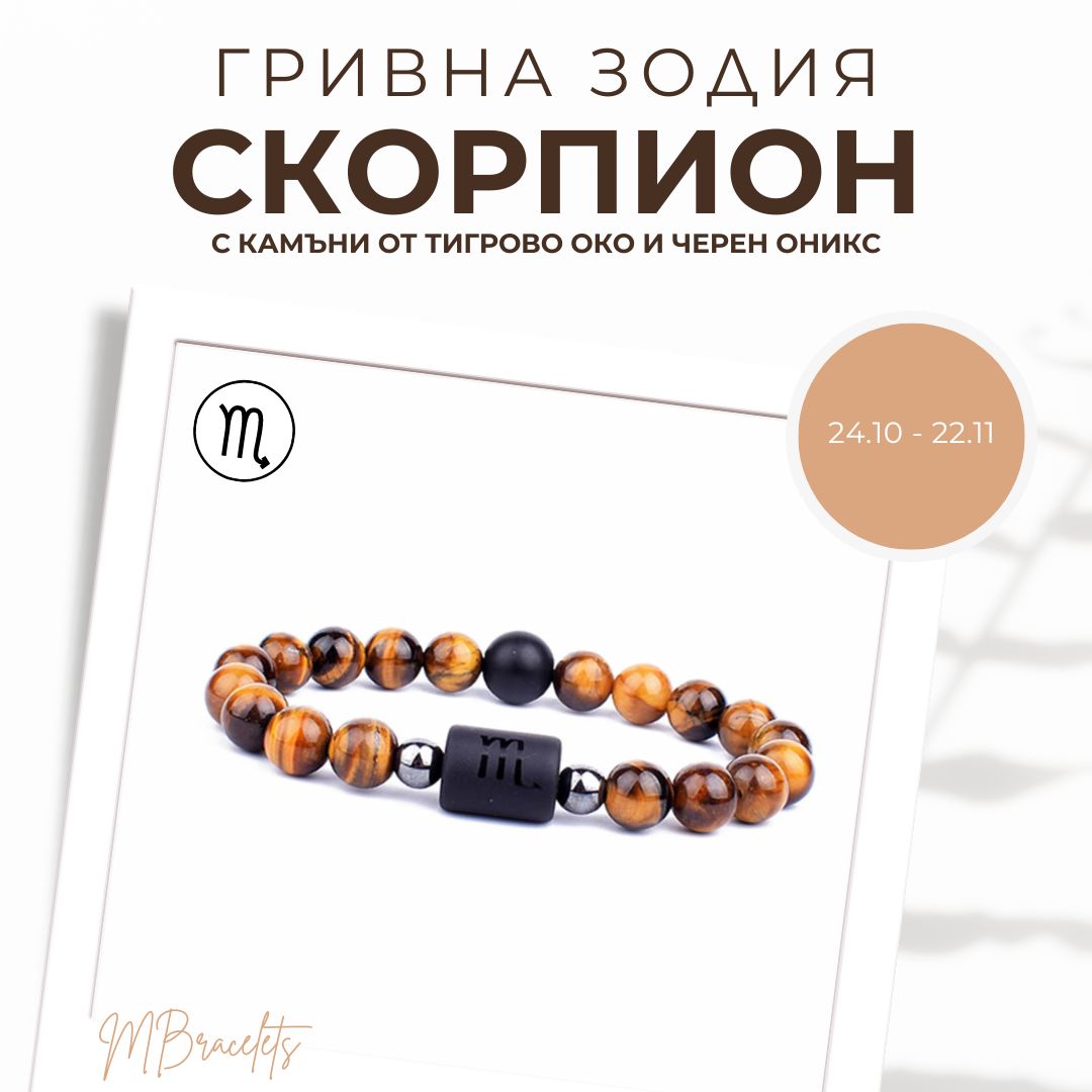 Гривна от Естествени Камъни Тигрово око и Черен оникс, Зодия Скорпион