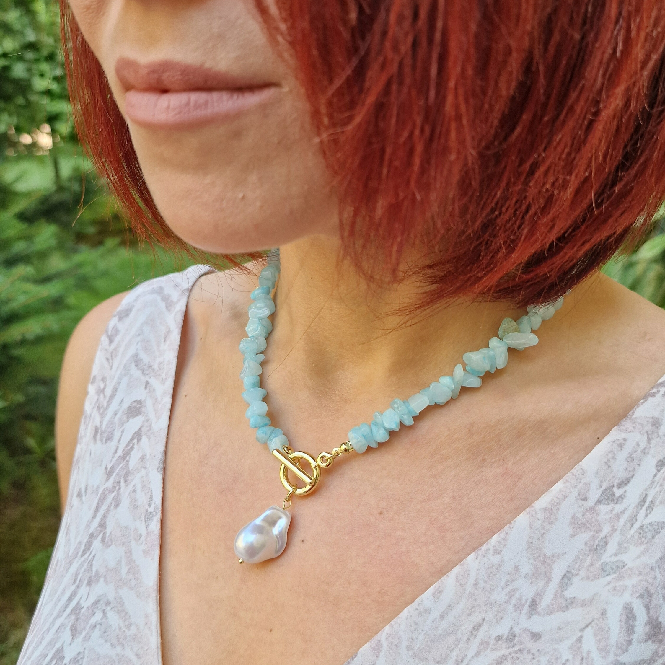Колието "Син кварц с Каменна перла" е подходящо за подарък за всеки повод.