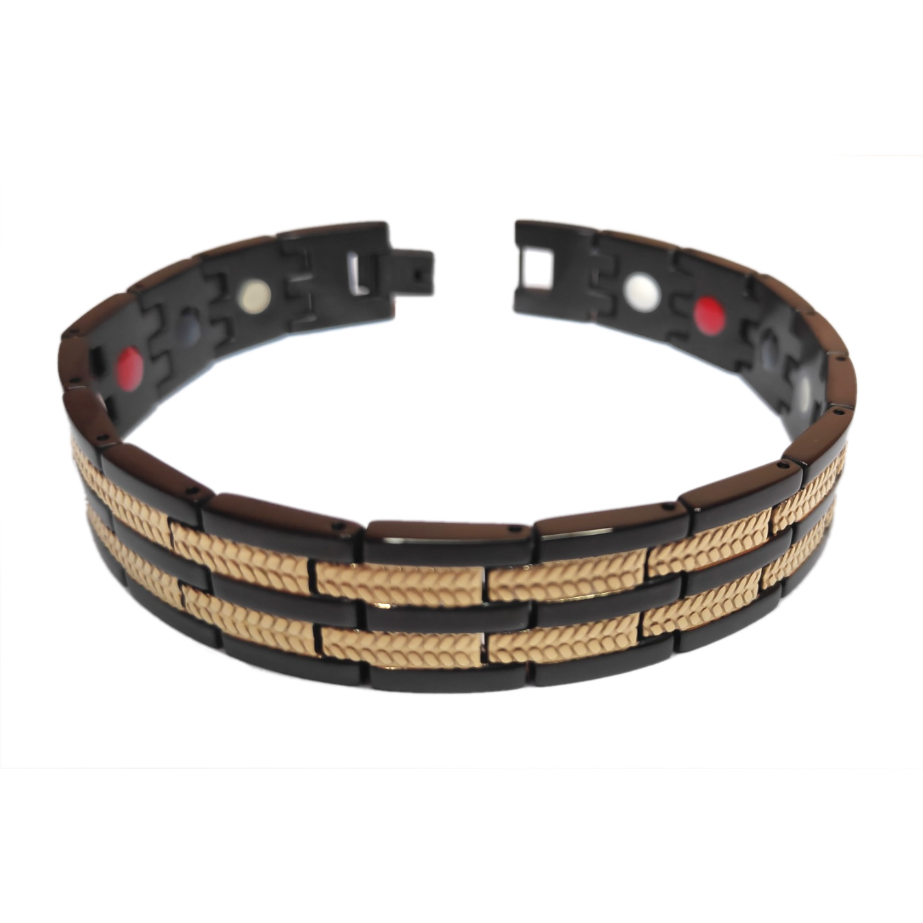 Регулира кръвното! Магнитна гривна Титанова Унисекс Черно-Златиста