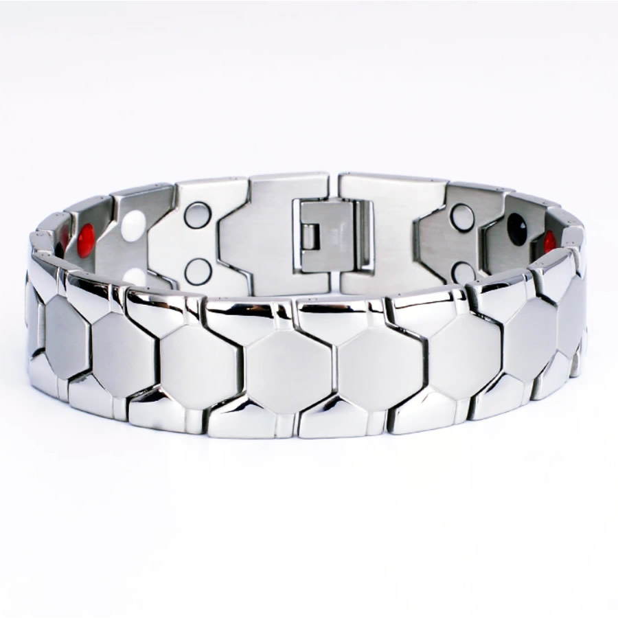 Магнитна гривна от титан за високо кръвно, Мъжка Сребриста