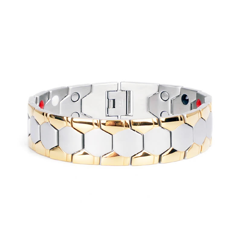 Магнитна гривна от титан за високо кръвно, Мъжка Сребристо-Златиста, Широка