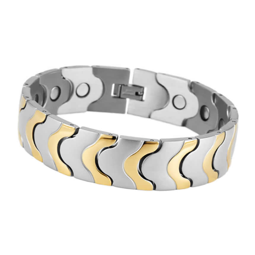 Магнитна гривна от титан за високо кръвно, Мъжка Сребристо-Златиста, Широка
