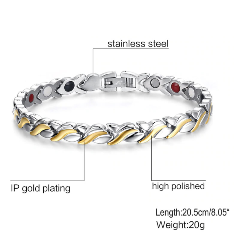 Дамска магнитна гривна за високо кръвно, Сребристо-Златиста от титан