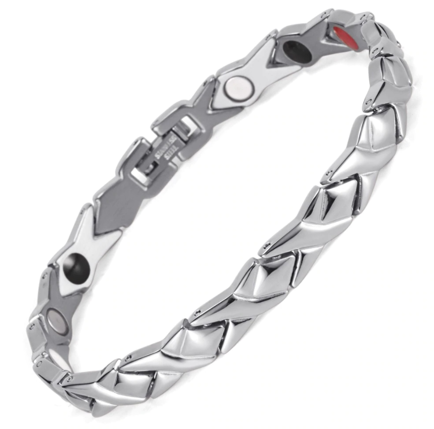 Дамска магнитна гривна за високо кръвно, цвят Сребрист, титаниева