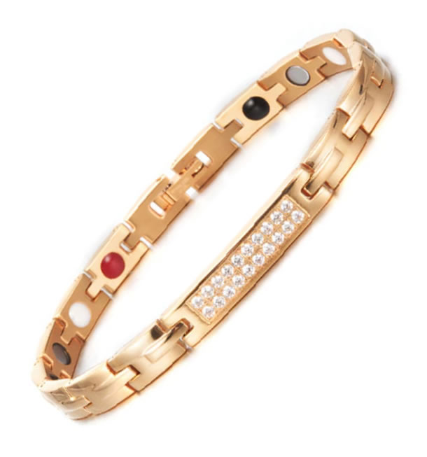 Дамска магнитна гривна против високо кръвно, цвят Златист с камъчета, титаниева
