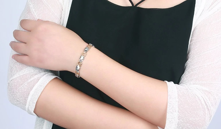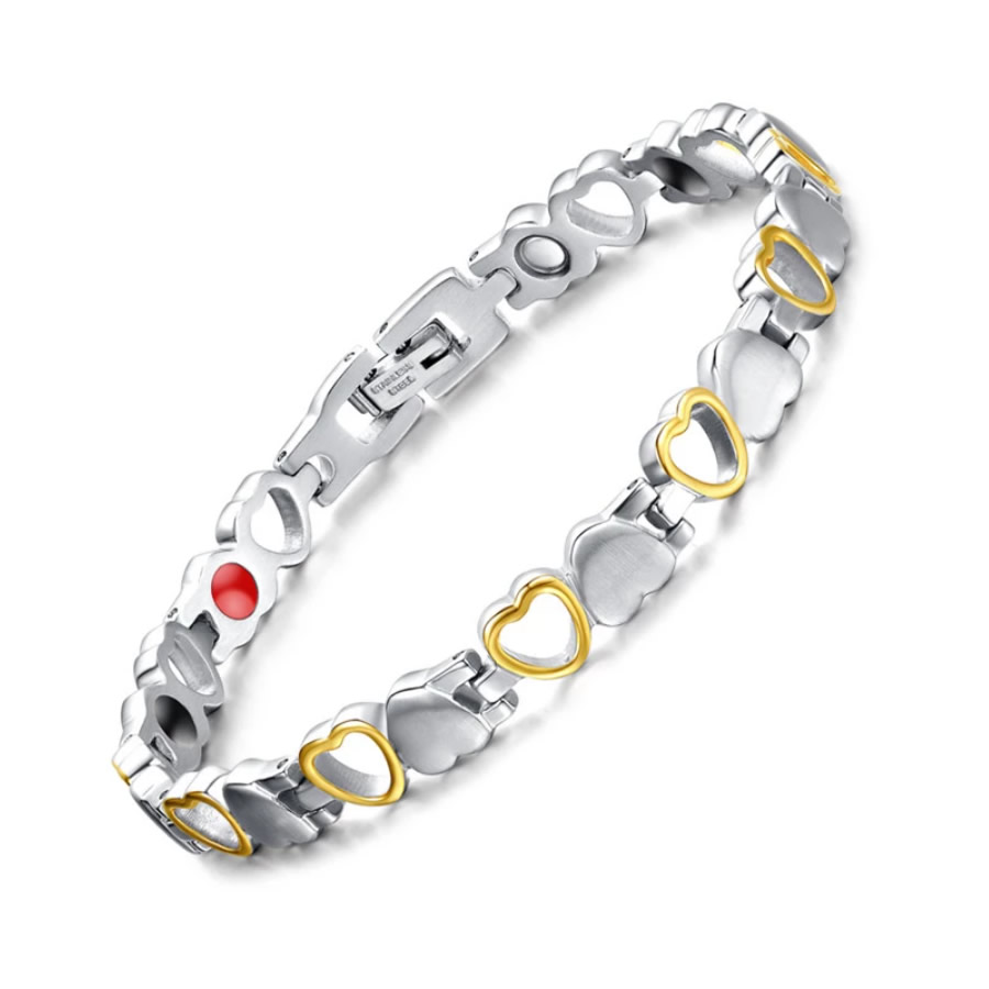 Дамска магнитна гривна за високо кръвно, цвят Сребристо-Златист, форма "Сърчица", Титаниева