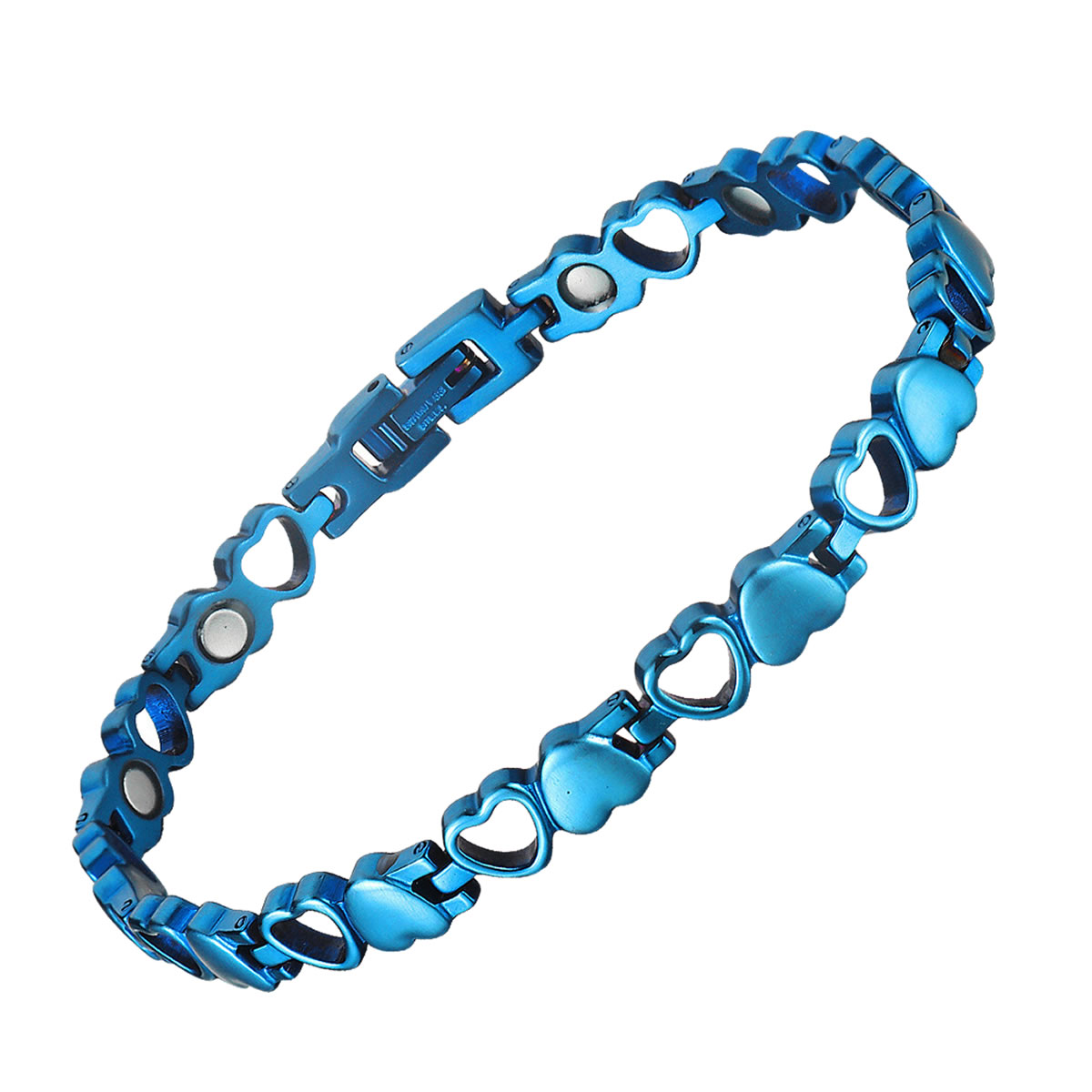 Дамска магнитна гривна за високо кръвно, "Сърчица", Синя, Титаниева