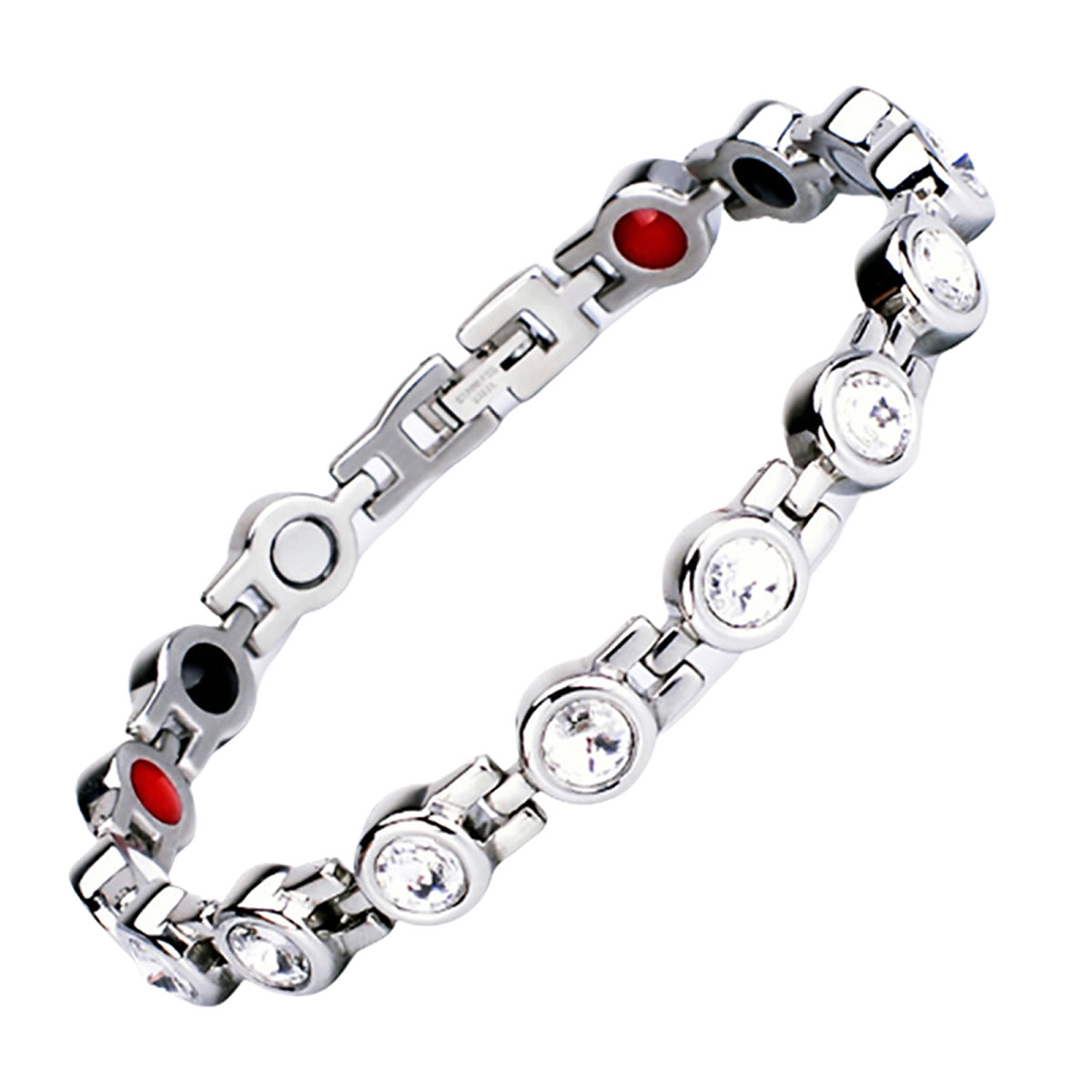 Дамска Магнитна гривна за Високо кръвно от титан с Камъчета, Сребриста (Код: T-412)