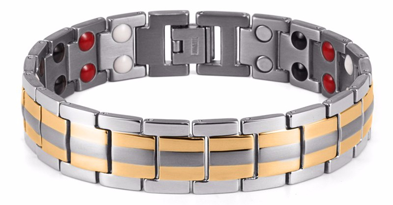 Магнитна гривна от титан за високо кръвно, Унисекс Сребристо-Златиста (Код: T-273)