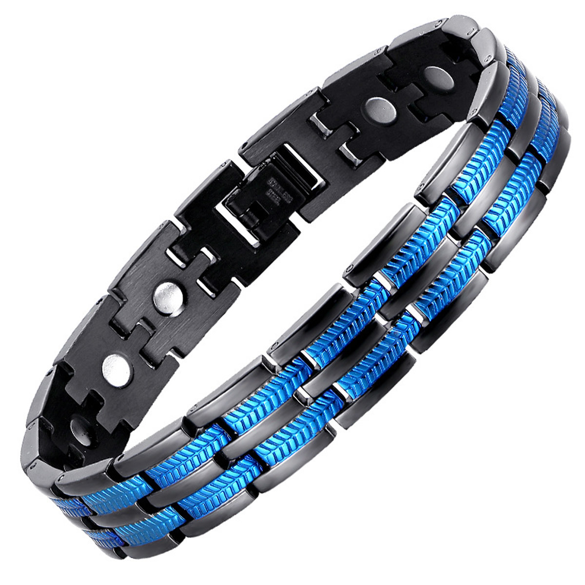 Регулира кръвното! Магнитна гривна от Титан, Унисекс, Черен + Син цвят