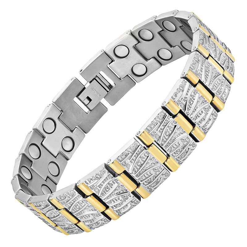 Свали кръвното с Унисекс Магнитна гривна от титан Сребристо-Златиста (Код: T-342)