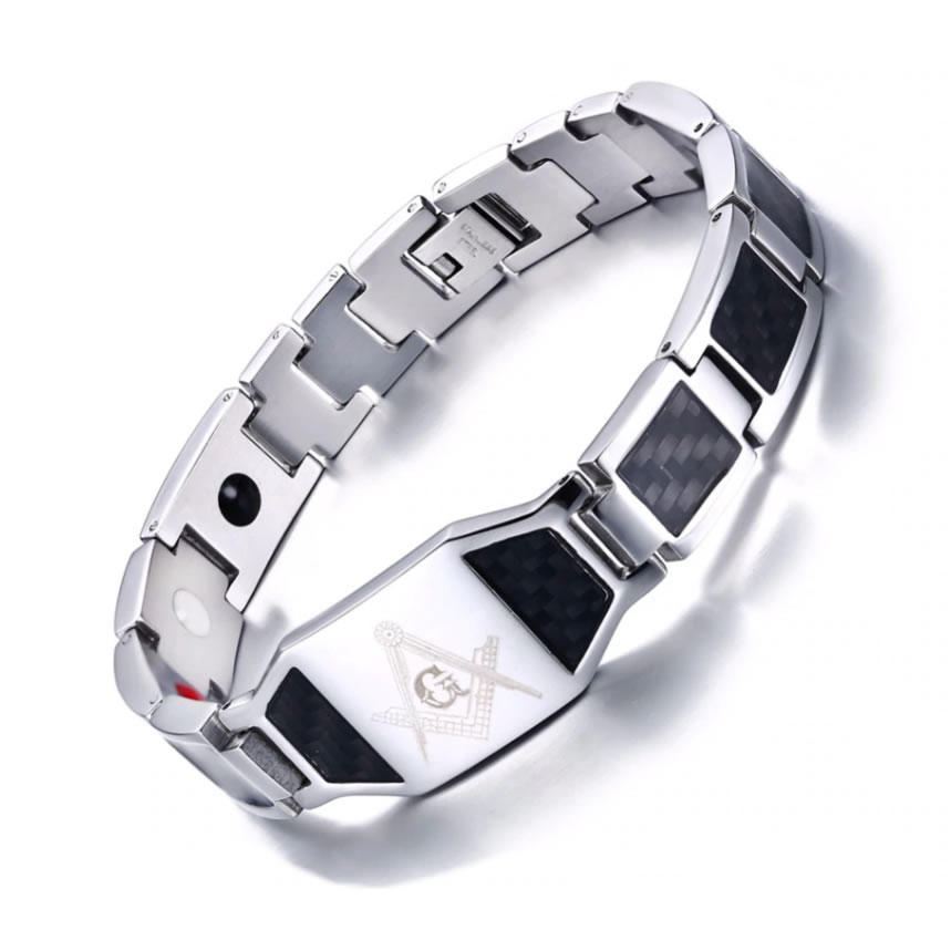 Титаниева магнитна гривна, която смъква кръвното, Унисекс модел, Сребристо-Черна