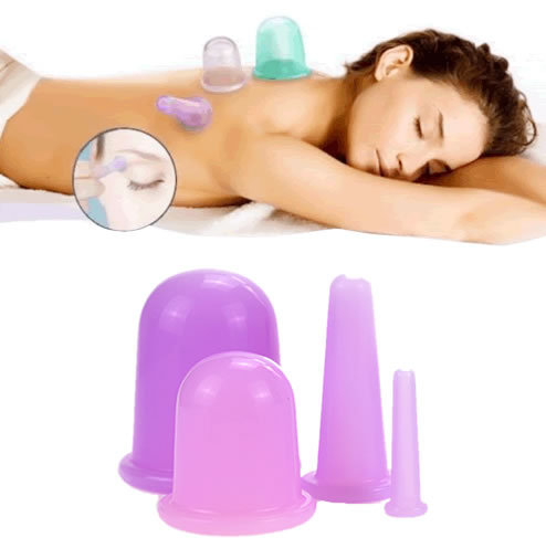 Комплект от 4 бр Силиконови вендузи за масаж на Лице и Тяло, Лилави