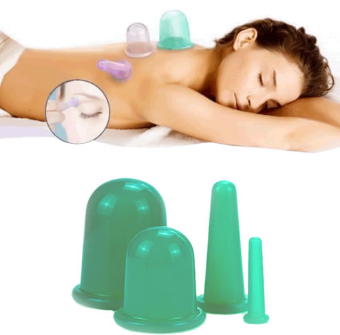 Комплект от 4 бр Силиконови вендузи за масаж на Лице и Тяло, Зелени